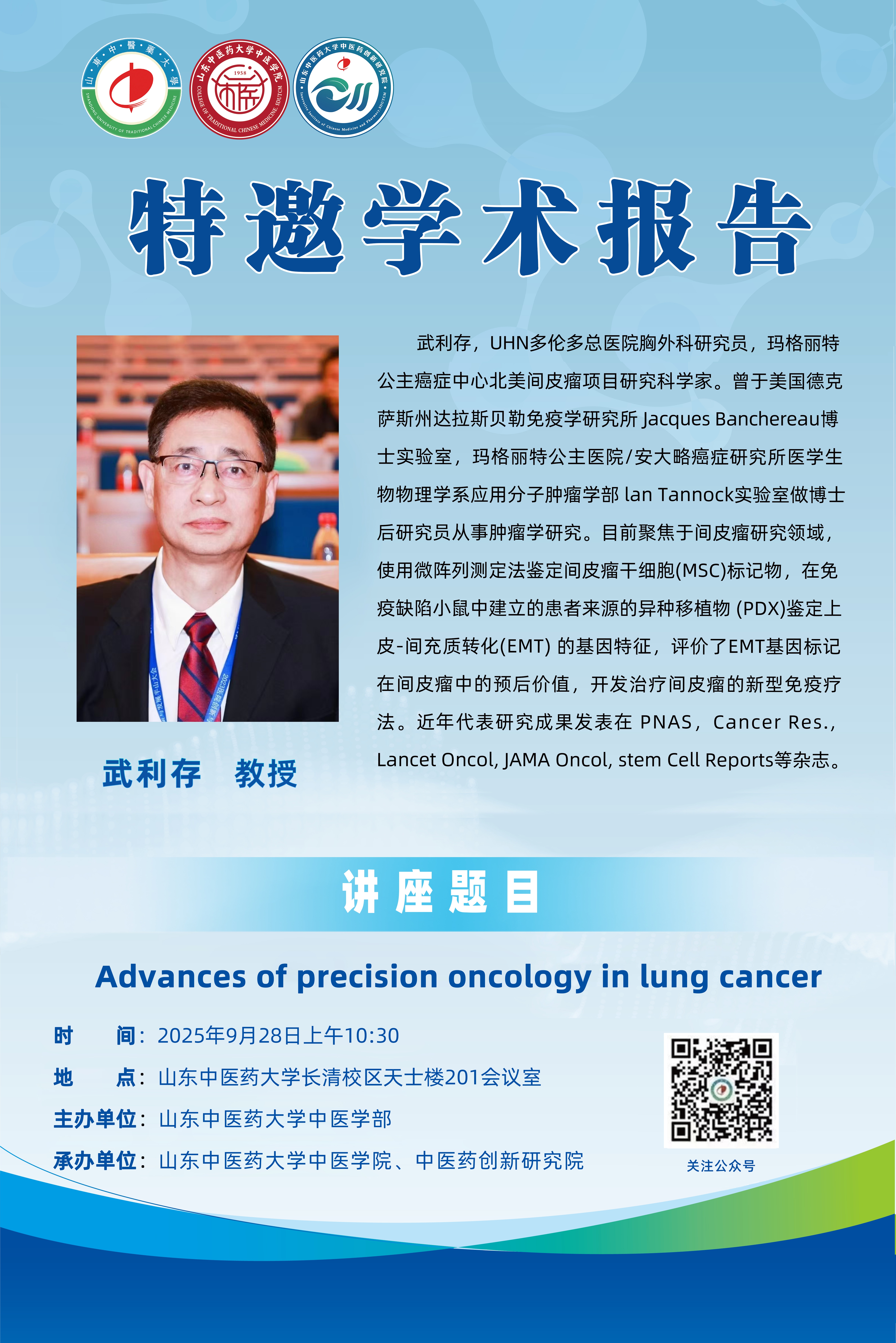 加拿大UHN多伦多总医院武利存教授应邀做客中医学...