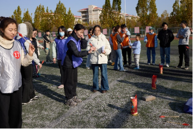 随着主持人宣布运动会正式开始,趣味项目依次展开:“两人三足”队员们步调一致、默契配合;“一圈到底”呼啦圈在臂膀的桥梁上轻盈穿梭;“投壶”箭矢的精准落点引发阵阵喝彩;“欢乐托球跑”展现速度与平衡;“背对背夹球跑”考验信任与同步;“推手”比赛你来我往,虚实结合,更添轻松欢笑。加时赛项目“拔河”将全场气氛推向高潮,绳索两端是力量的角逐,更是集体的凝聚。